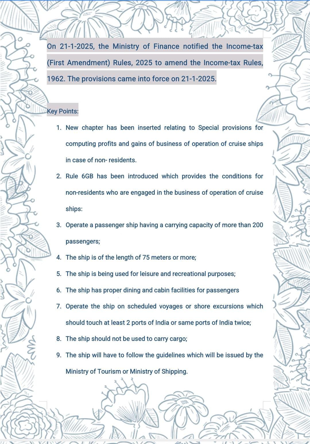 Rule 6GB has been introduced which provides the conditions for non-residents who are engaged in the business of operation of cruise ships: